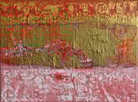 This painting shimmers with textural beauty and depicts an abstract world map of heatwaves.